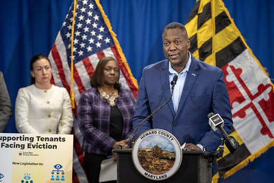 ELLICOTT CITY, MD – Howard County Executive Ball today announced his administration’s new LIVE (Landlord accountability, Investment in quality, Victim protection and Eviction prevention) initiative to address and reduce landlord-tenant issues. Under LIVE, Ball will submit legislation to the Howard County Council regarding the eviction process and has signed an Executive Order addressing habitability concerns experienced by tenants. Photos from today’s press conference can be found on Howard County Government’s Flickr website.