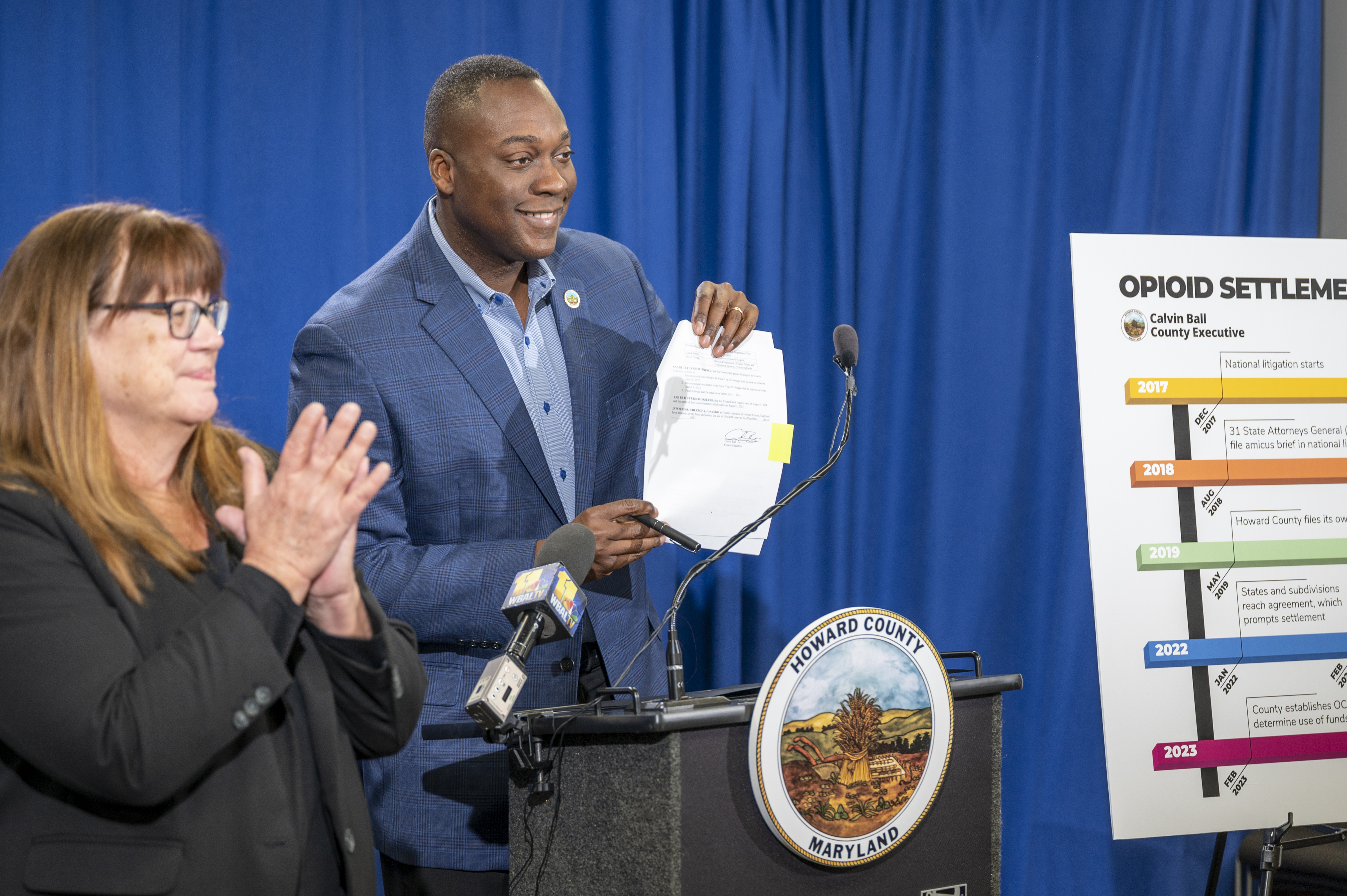 ELLICOTT CITY, MD – Howard County Executive Calvin Ball today signed an Executive Order creating an Opioid Collaborative Community Council to assist in determining priorities for how the County should use funds received through a National Settlement Agreement with opioid manufacturers and any future settlements. The Council is charged with making recommendations to the Fiscal Year 2024 budget on or before June 30, 2023, with final findings made on or before July 31, 2024. Pictures from the event can be found here.