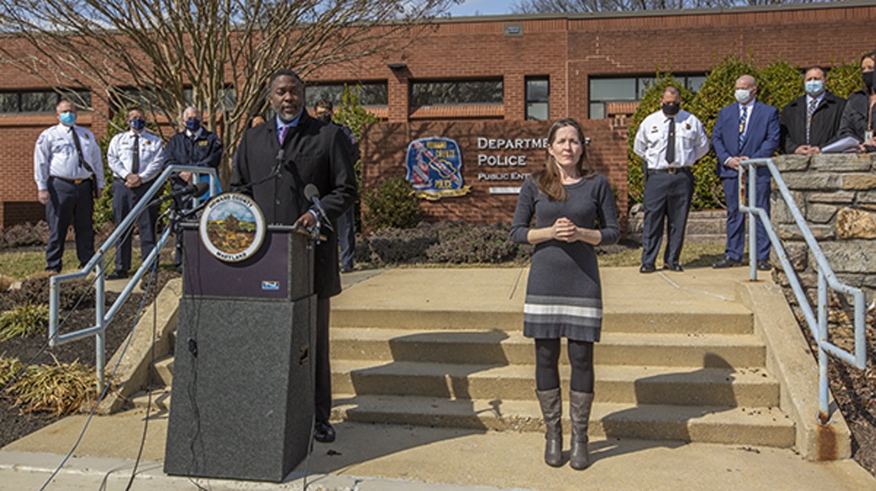ELLICOTT CITY, MD – Today, Howard County Executive Calvin Ball hosted a press conference addressing Ellicott City resident David Crawford’s arrest in a serial arson investigation spanning multiple counties in Maryland. Crawford was arrested in connection to twelve arsons that occurred in Howard, Frederick, Charles, Montgomery, and Prince George’s County from 2011 to 2020. Crawford is being held without bond at the Howard County Detention Center. Charging documents can be found here. Photos from the news conference can be found here.