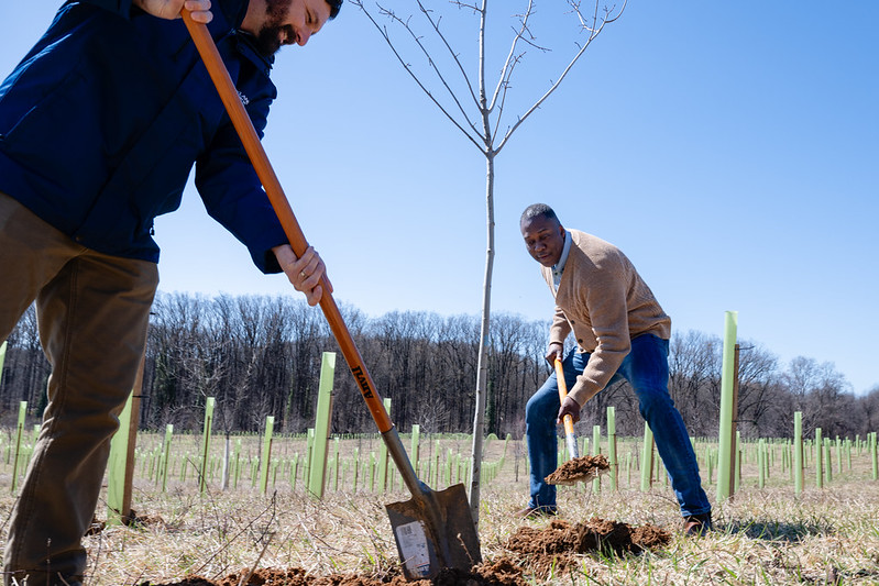 ELLICOTT CITY, MD – Howard County Executive Calvin Ball today joined Maryland Secretary of Natural Resources (DNR) Joshua Kurtz to celebrate DNR’s completion of its first series of tree plantings, pursuant to a memorandum of understanding (MOU) signed by the two in October that enhances Howard County and State’s collaboration to address shared climate and natural resource goals. DNR marked the first day of spring yesterday, March 20th, by completing its planting of 46,800 trees across 107 acres in Howard County, exceeding DNR’s original 2025 spring planting goals for the County. Photos from the event can be found on the County’s Flickr webpage.