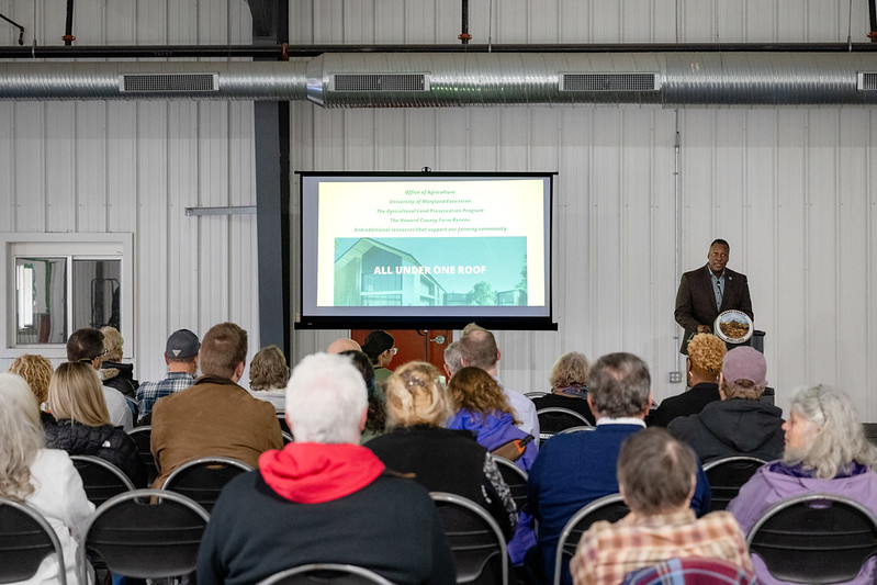 ELLICOTT CITY, MD – Howard County Executive Calvin Ball on Tuesday, March 17th delivered his State of Agriculture address at the Howard County Fairgrounds, where he announced the recipients of the Agricultural Grant for Innovation and Expansion and the Enhanced Agricultural Grant, both totaling $600,000. Ball also announced the creation of the Eastern Howard County Agricultural Task Force and the launch of the HoCo Digital Farm Passport. Photos from the event can be viewed on Howard County Government's Flickr website and both Ball’s typed speech and PowerPoint presentation on the County’s website.