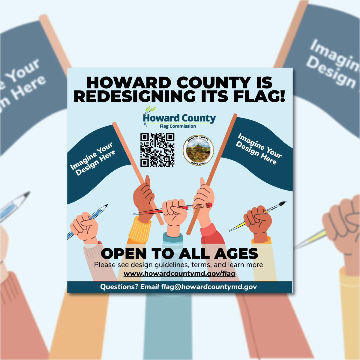 We are excited to reach out to the public and tap into their creative talents to design a new flag,” said Coleen West, Executive Director of the Howard County Arts Council and Chair of the Howard County Flag Commission. “The Commission looks forward to receiving designs from artists, designers and community members of all ages and artistic abilities that demonstrate our civic pride and celebrate our histories, values and aspirations.