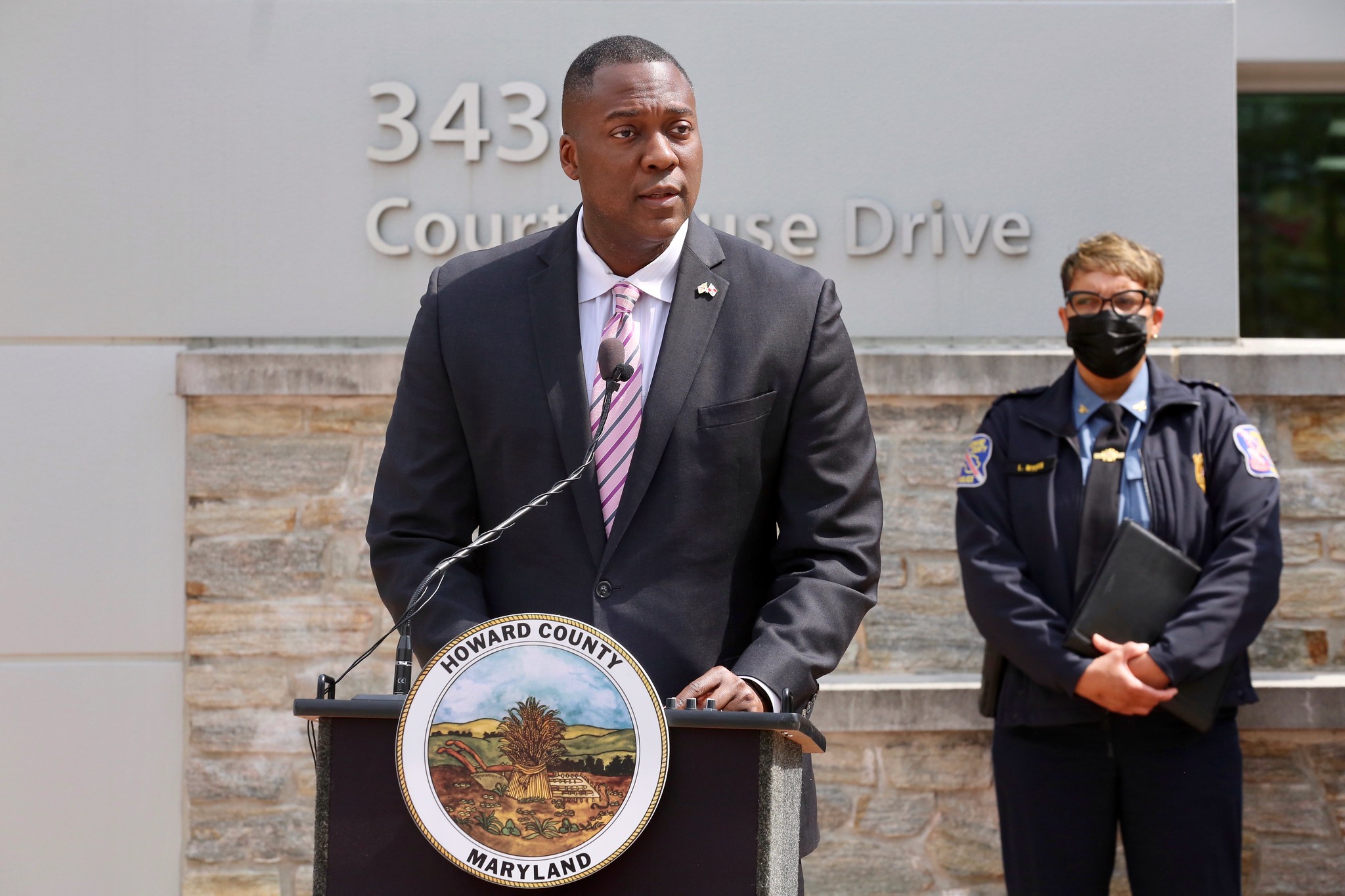 ELLICOTT CITY, MD – Today, Howard County Executive Calvin Ball detailed new policy for School Resource Officers, addressing community concerns and input over the past year. Ball was joined by Howard County Police Department (HCPD) Chief Lisa Myers and State’s Attorney Rich Gibson as he outlined his support for keeping SROs in public schools. Photos of the event can be found here.