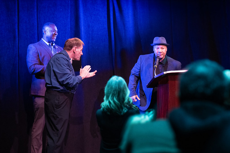 ELLICOTT CITY, MD – Howard County Executive Calvin Ball today announced Truth Thomas has been selected as Howard County’s inaugural Poet Laureate. In honor of National Poetry Month, Ball made the announcement during the Howard County Poetry and Literature Society’s (HoCoPoLitSo) Nightbird Reading at the 16th annual Blackbird Poetry Festival. Photos of the event can be seen here.