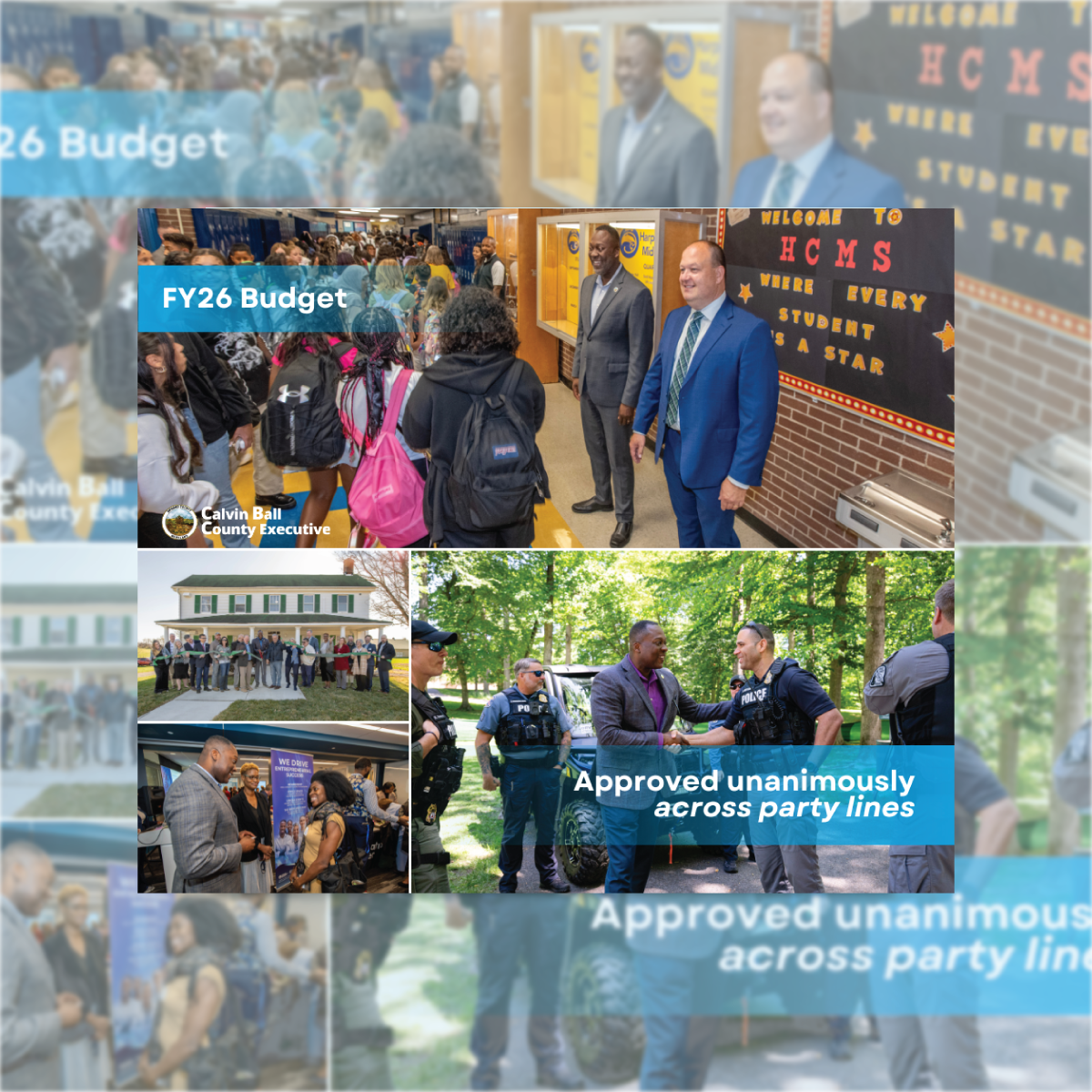 ELLICOTT CITY, MD – Howard County Executive Calvin Ball’s impactful $2.35 billion Fiscal Year 2026 (FY26) Operating Budget was today unanimously approved, across Party lines, by the Howard County Council. This balanced spending plan prioritizes Howard County’s shared values, while navigating emerging fiscal challenges and maintaining support for core services and strategic investments without increasing property or income taxes for residents. In addition, the County Council also voted to approve Ball’s carefully crafted $365 million FY26 Capital Budget, providing critical resources for school construction, public safety, community facilities, flood control, infrastructure maintenance, transportation, and more.