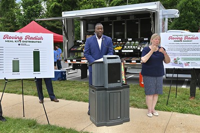 ELLICOTT CITY, MD – Howard County Executive Calvin Ball today announced the launch of the County’s new Roving Radish Mobile Market. This farm-to-family market on wheels, builds upon the County’s award-winning Roving Radish healthy meal kit and marketplace programs, by bringing farm-fresh food directly to Howard County neighborhoods with the greatest need. Pictures from the event can be found here.