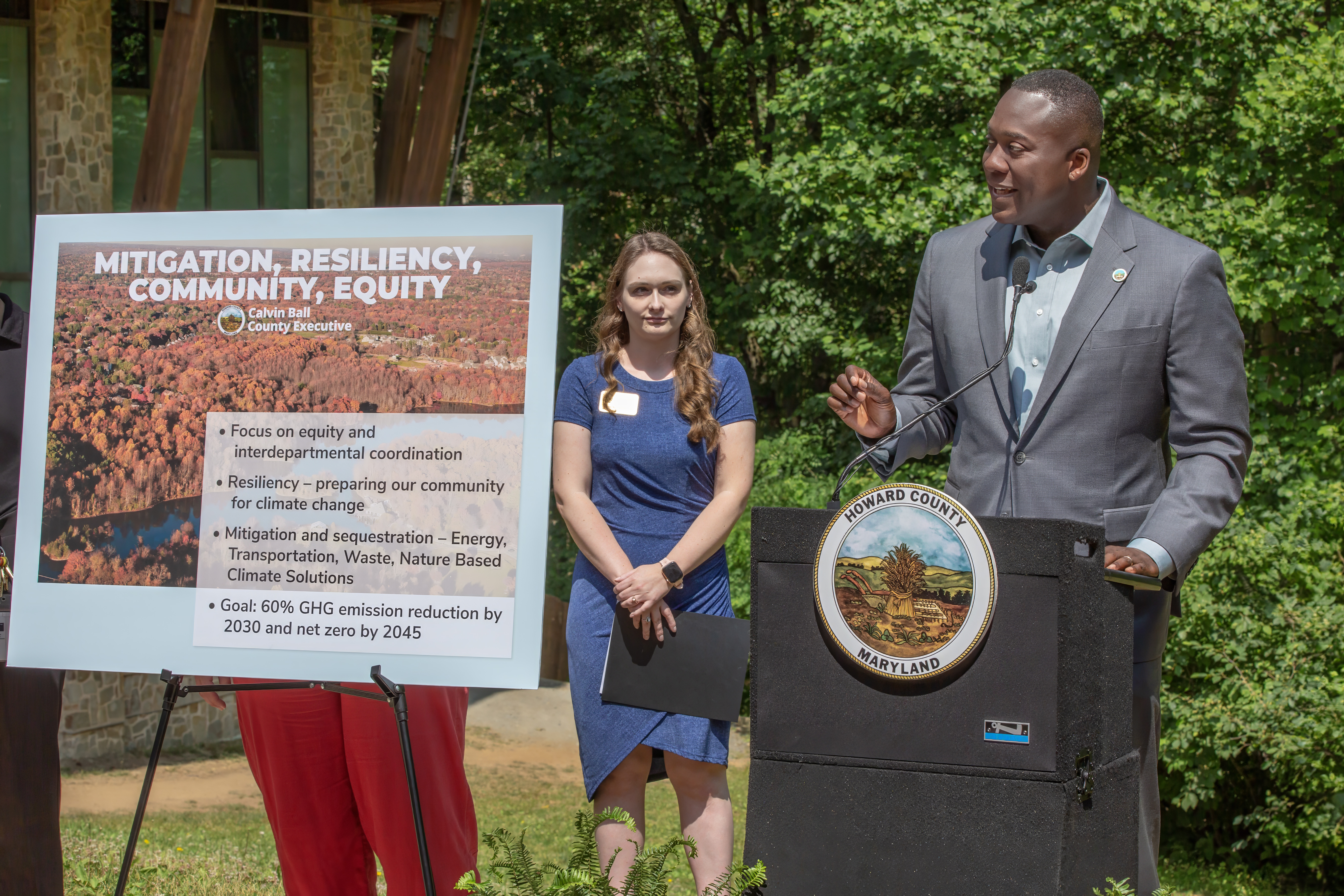 ELLICOTT CITY, MD – Howard County Executive Calvin Ball today announced HoCo Climate Forward, the county’s first climate plan since 2015. This is the County’s first climate plan to add a focus on climate resiliency and environmental justice. Photos from the event can be found here.