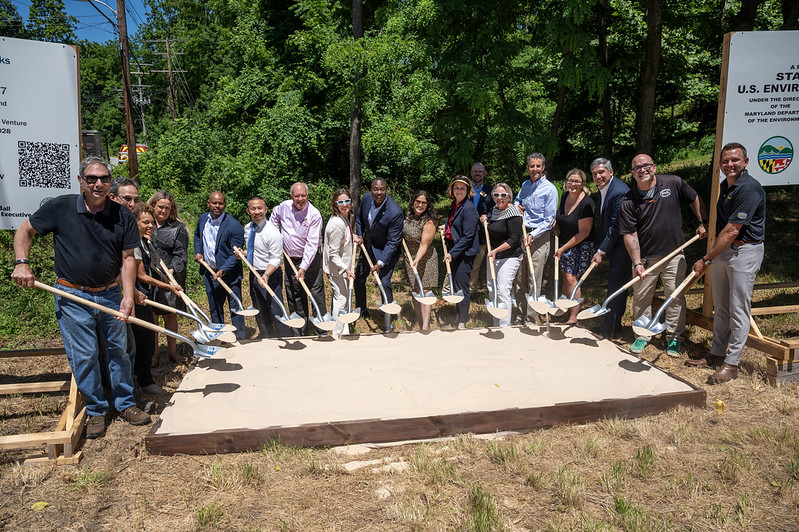 ELLICOTT CITY, MD – Howard County Executive Calvin Ball today broke ground on his Ellicott City Safe and Sound plan’s highly anticipated North Tunnel stormwater conveyance project. This is the largest public works project in Howard County’s history. Pictures from the event can be found here.