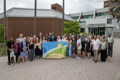 For more than 56 years, Howard County’s former flag flew high. While it served us well as a central symbol of our county, today, we welcome in a new flag, whose lasting design reflects our county’s vibrancy and diversity, is a perfect blend of our past, present, and future, and is an inspiration to all who live, work, and play here. As we mark the end of a two-year process with this flag raising, I’d like to take a moment to thank all who were involved along the way. From the members of our resident-led Howard County Flag Commission whose time, input, and recommendations led us through the process, to all who took the time to dream up and submit a new flag design for our county, and to our community members who shared their feedback and participated along the way, we sincerely thank you.