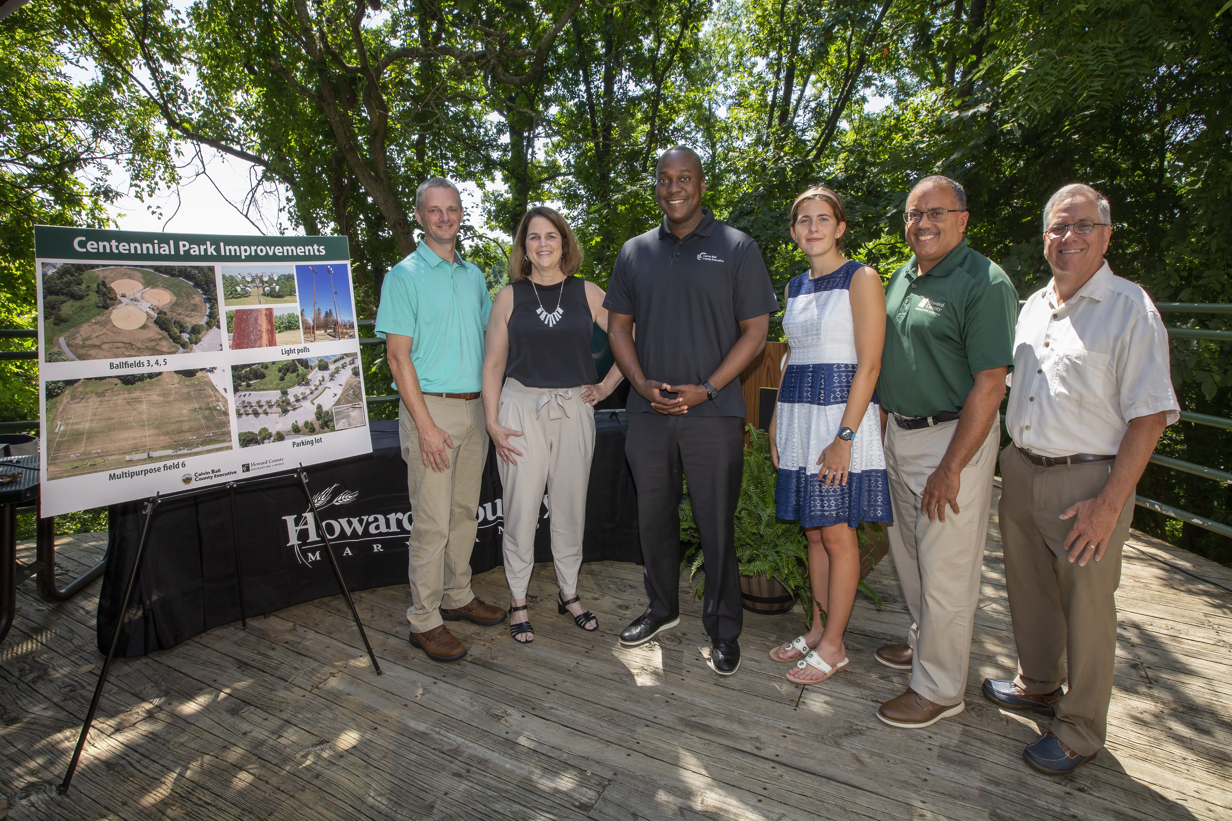 ELLICOTT CITY, MD – Today, Howard County Executive Calvin Ball announced $8 million to improve local parks and playground infrastructure. The improvements are made possible by Local Parks and Playground Infrastructure Funding (LPPIF) grant from the State of Maryland, with a majority of the grant supporting renovations to Centennial Park – West Area. Improvements include athletic lighting replacements, turf baseball diamonds, one or two turf fields, and pathways. The grant will also support new playground equipment and safety surfacing for Schooley Mill and Warfields Pond parks. Photos of the event can be found here. Aerial footage of the Centennial Park – West improvement area can be found here.