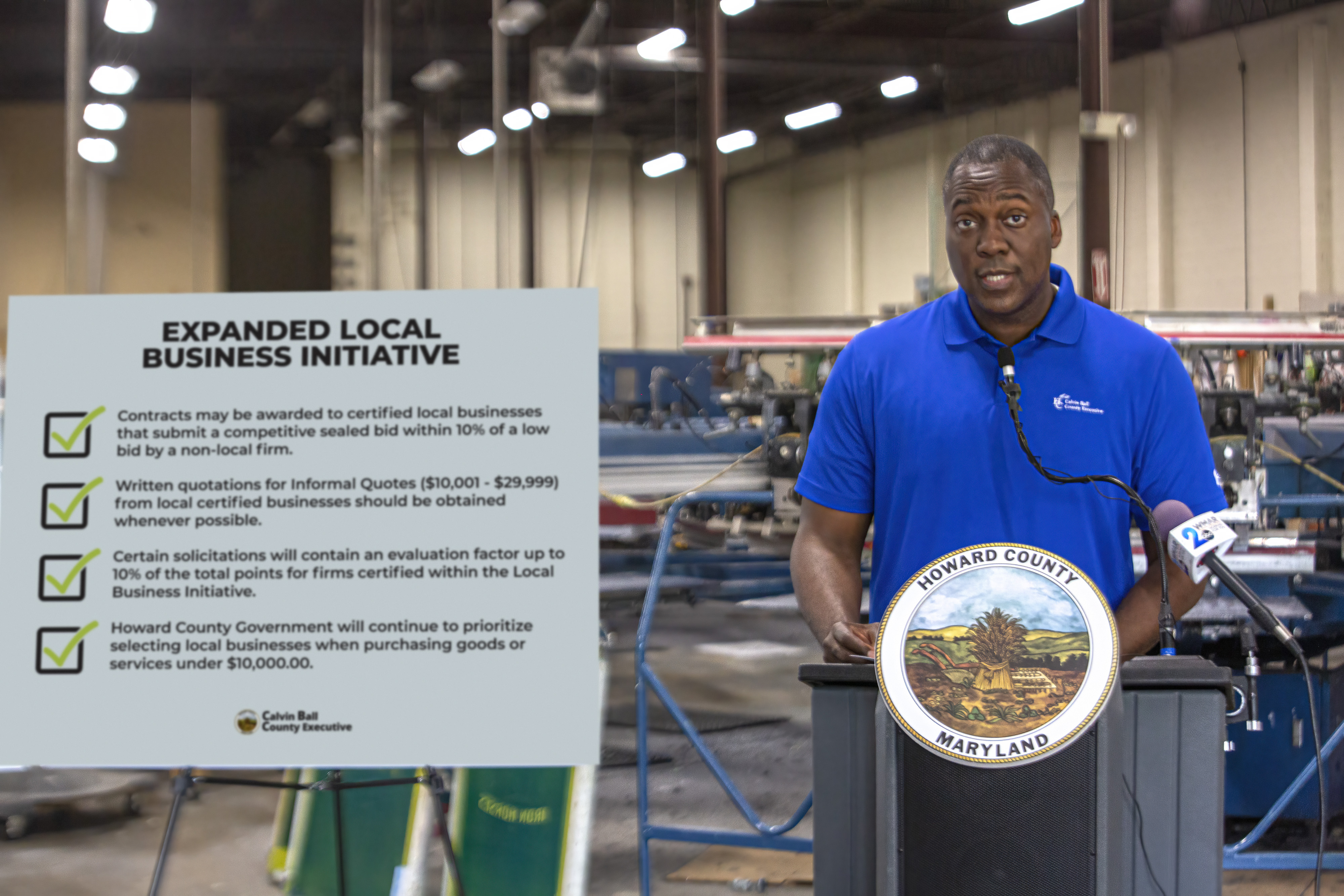 ELLICOTT CITY, MD – Howard County Executive Calvin Ball signed an impactful Executive Order (EO) today establishing new rules for awarding procurement dollars to local businesses. The EO strengthens the Local Business Initiative with the following updates:
