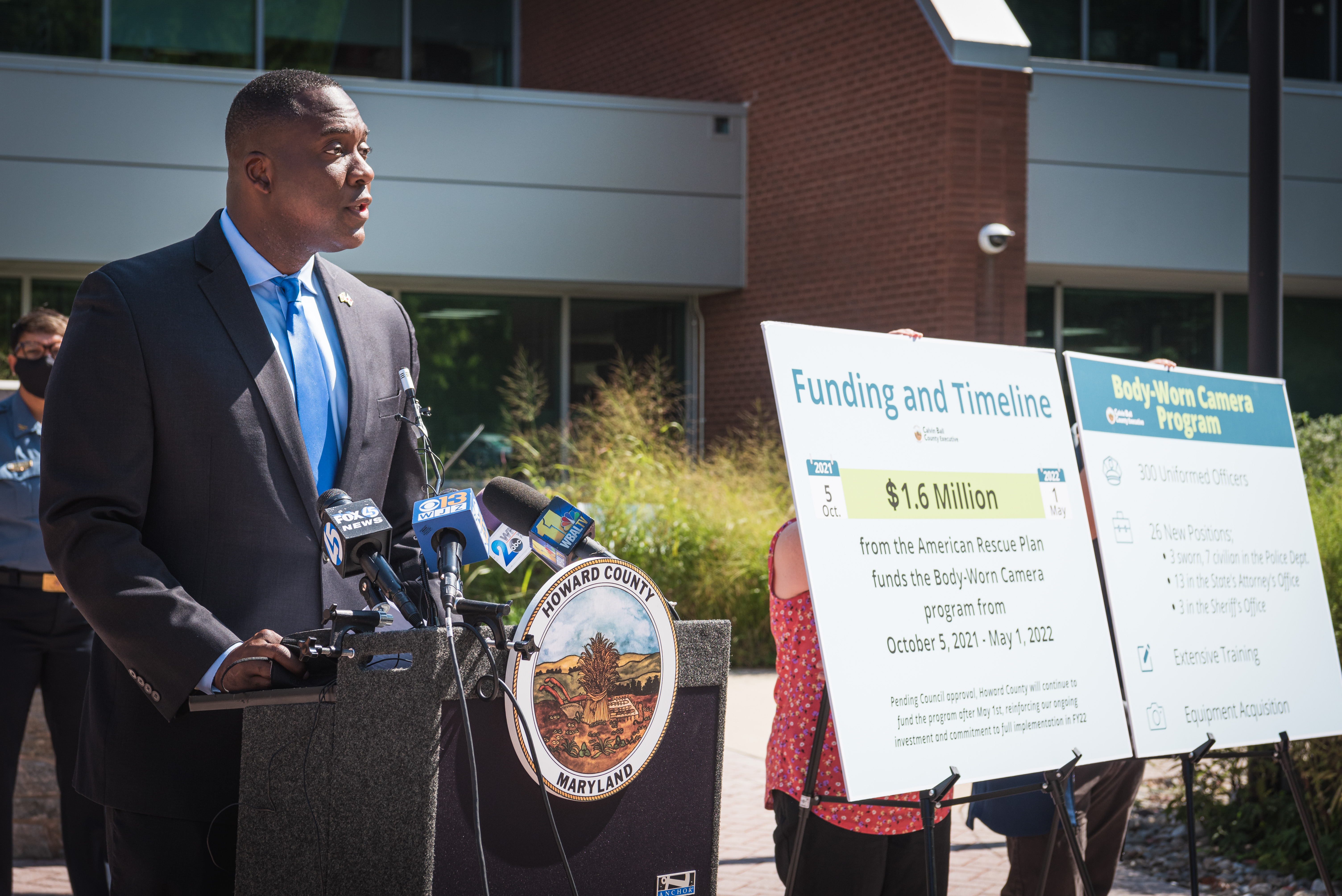 ELLICOTT CITY, MD – Howard County Executive Calvin Ball announced plans to file a budget amendment releasing County funding from contingency in the FY2022 operating budget for Howard County’s body-worn camera program this Thursday. If the budget amendment is approved by the County Council, Ball plans to use $1.6 million in American Rescue Plan (ARP) to provide funding for the body-worn camera program beginning on October 5, 2021. With funding in place, the body-worn camera program will be fully implemented ahead of the 2023 Maryland General Assembly mandate pending Council approval of the budget amendment. Photos can be found here.