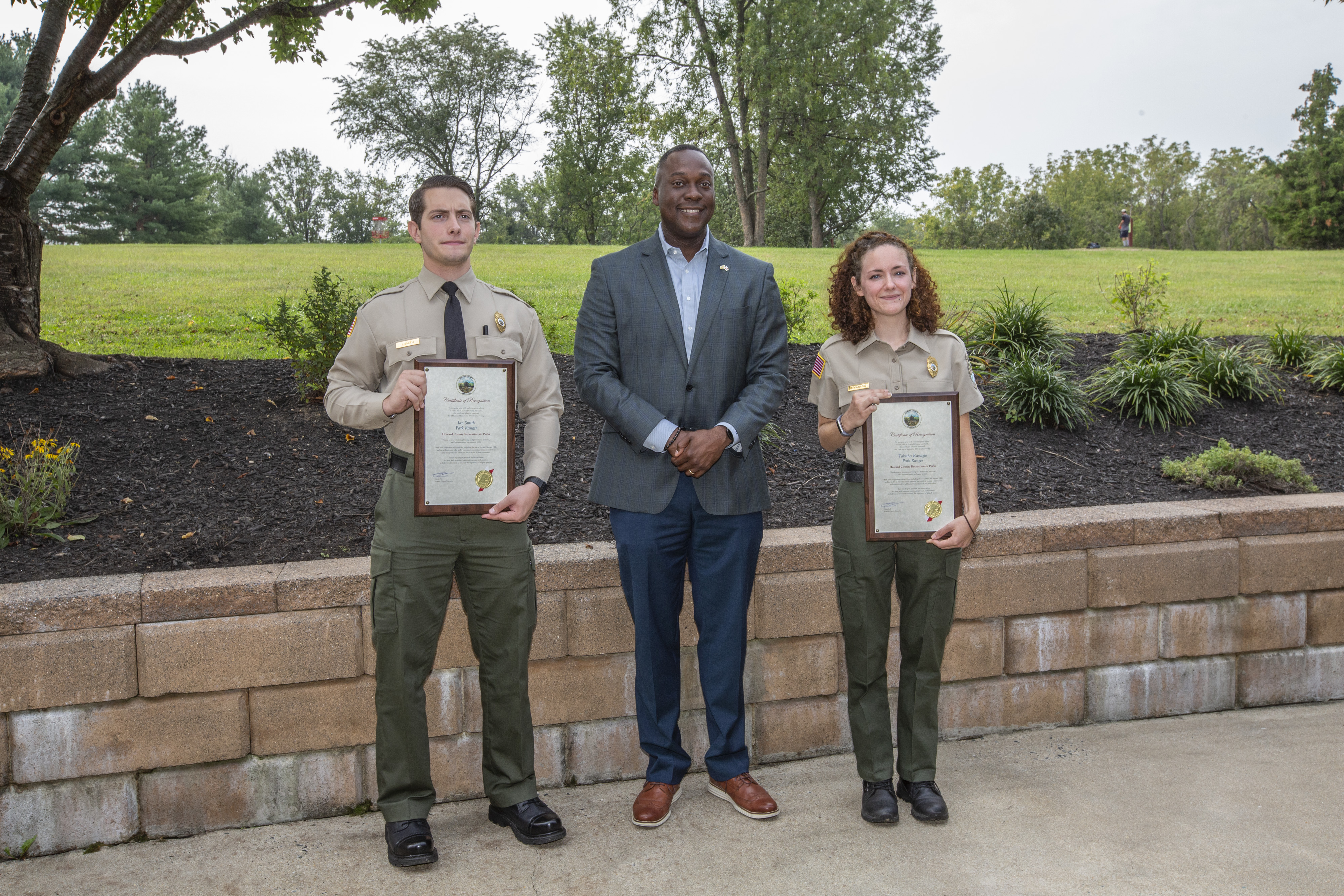 On August 7, 2021 at approximately 6:19 p.m., Howard County Police Department dispatched a call for a medical emergency at Rockburn Branch Park, where two men were unconscious from a suspected heroin overdose. Rangers Tabitha Kanagie and Ian Smith approached the scene and assessed each patient, neither was breathing or had a pulse, and both were blueish in color around the lips. The Rangers began the resuscitation process on their respective patients. Each Ranger then administered one dose of Narcan (naloxone) to their patients and continued to provide chest compressions. Eventually both patients showed signs of life.