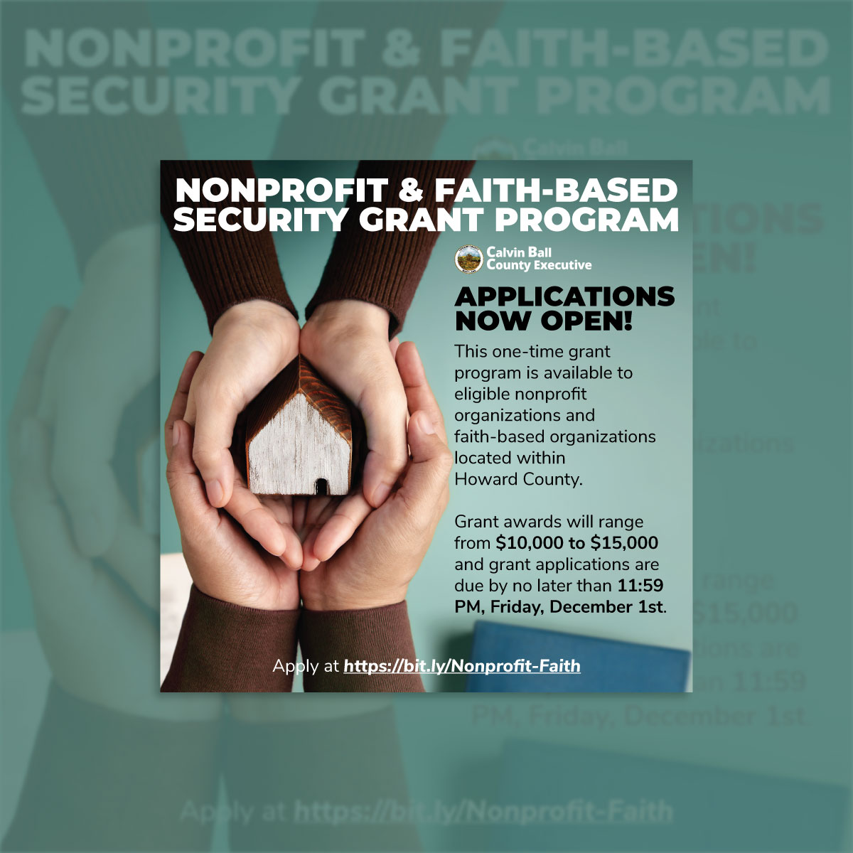 For additional information on program eligibility and the grant application, visit www.howardcountymd.gov/county-administration/security-grants-nonprofit-and-faith-based-organizations.
