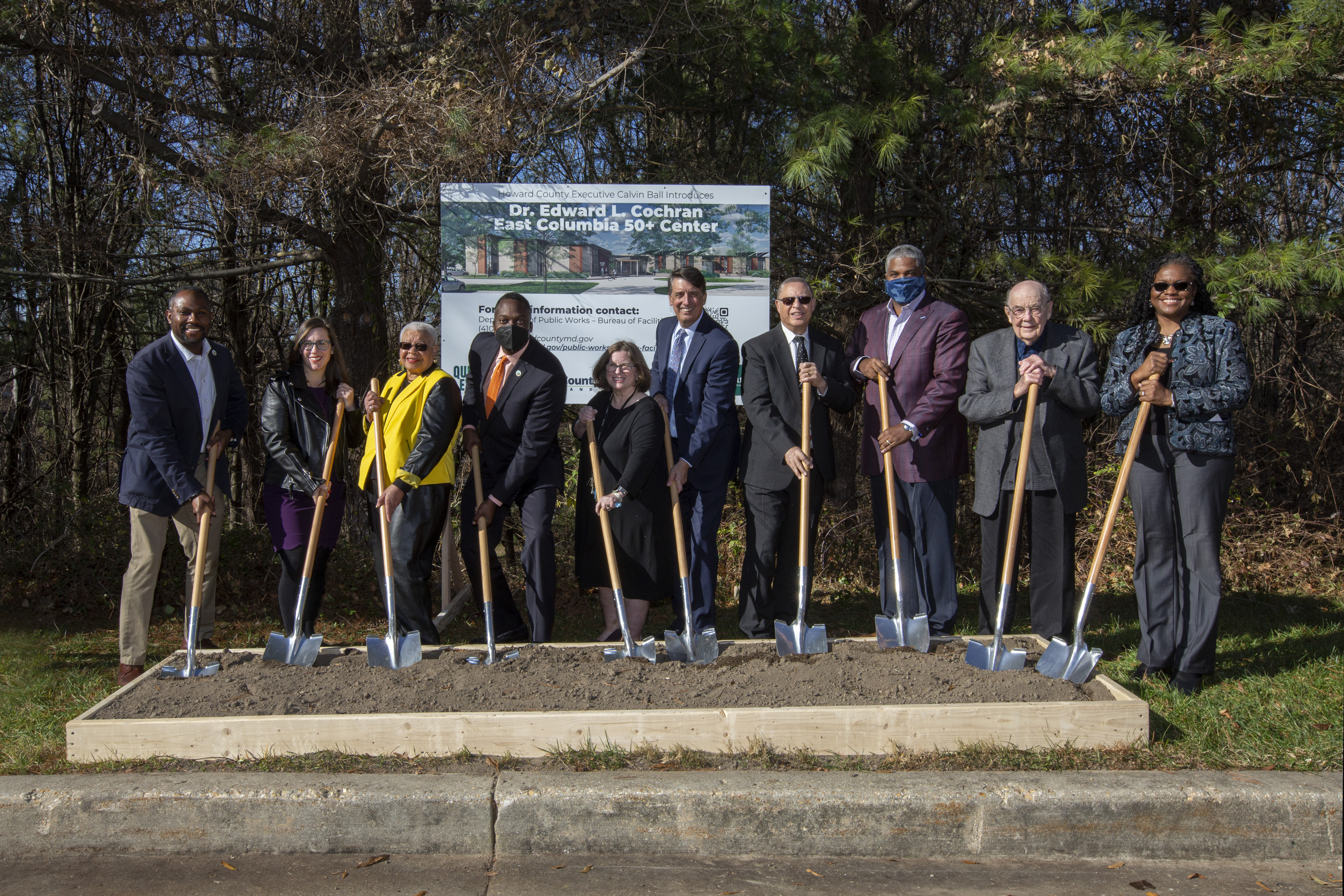 ELLICOTT CITY, MD – Howard County Executive Calvin Ball was joined by state and local officials and numerous community members today to break ground on the newly named Dr. Edward L. Cochran East Columbia 50+ Center, located at 6600 Cradlerock Way. The expanded center will be nearly 30,000 square feet and is expected to be completed by July 2023. Photos of the event can be found here.