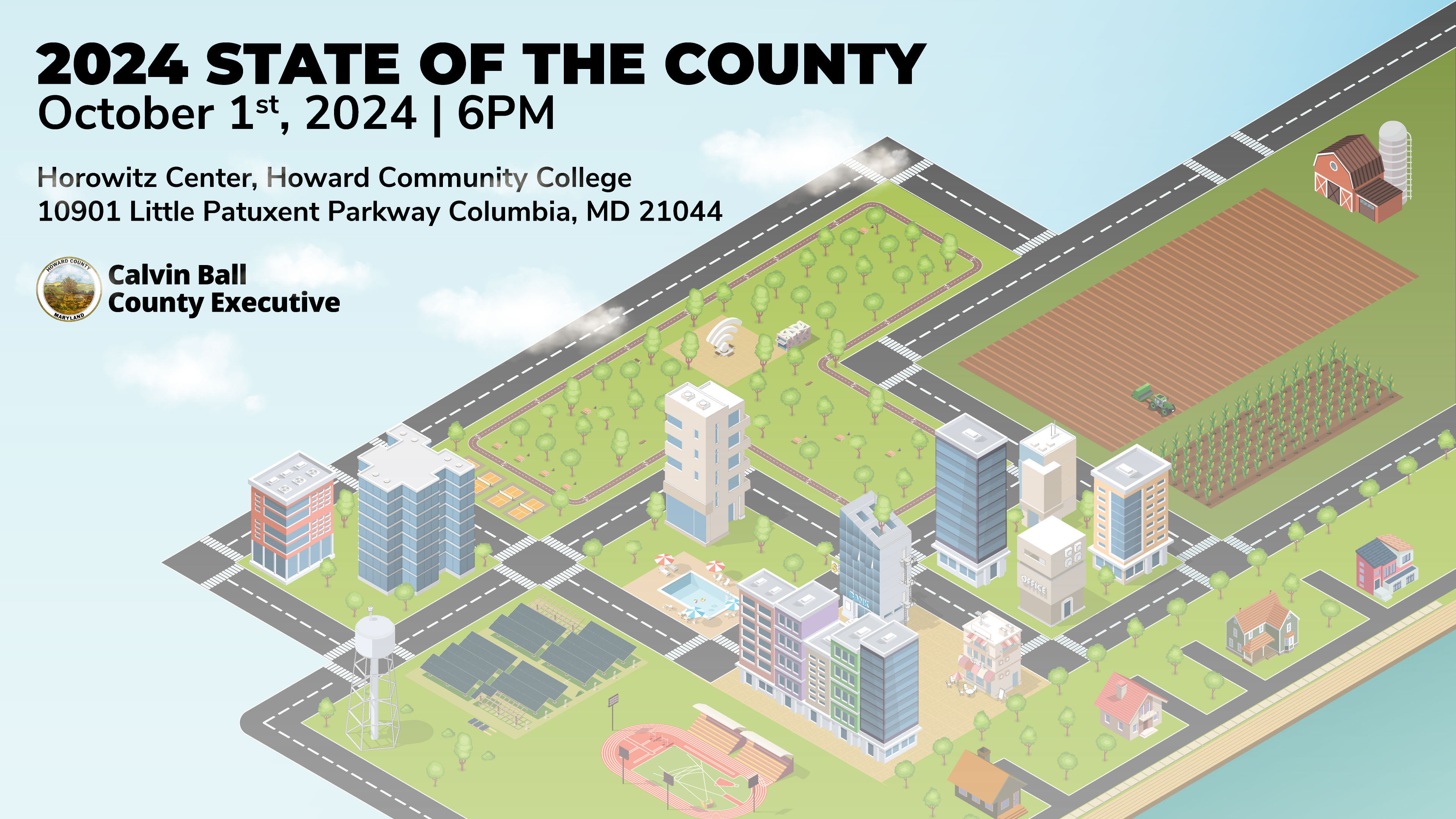 Howard County Executive Calvin Ball will deliver his 2024 State of the County address on Tuesday, October 1st at 6pm at The Horowitz Visual and Performing Arts Center at Howard Community College.
