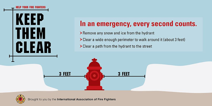 In the winter, fire hydrants often become covered by snowfall and/or plowing operations. In an emergency, every second counts. When a hydrant is blocked, hidden, or hard to find due to snow and ice, it slows down the fire department’s response.