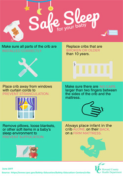 The Health Department manages this program in partnership with Cribs for Kids®. The program provides safe sleep education and a new portable crib to eligible families in need. Supplies are limited.
